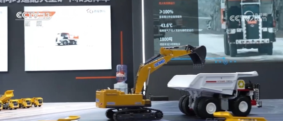 这个模拟的就是一个矿山的作业区,可以看到从装料到运输到卸料,生产的全流程都用上了这样的无人驾驶智能矿卡,可以实现生产过程的高效协同作业。