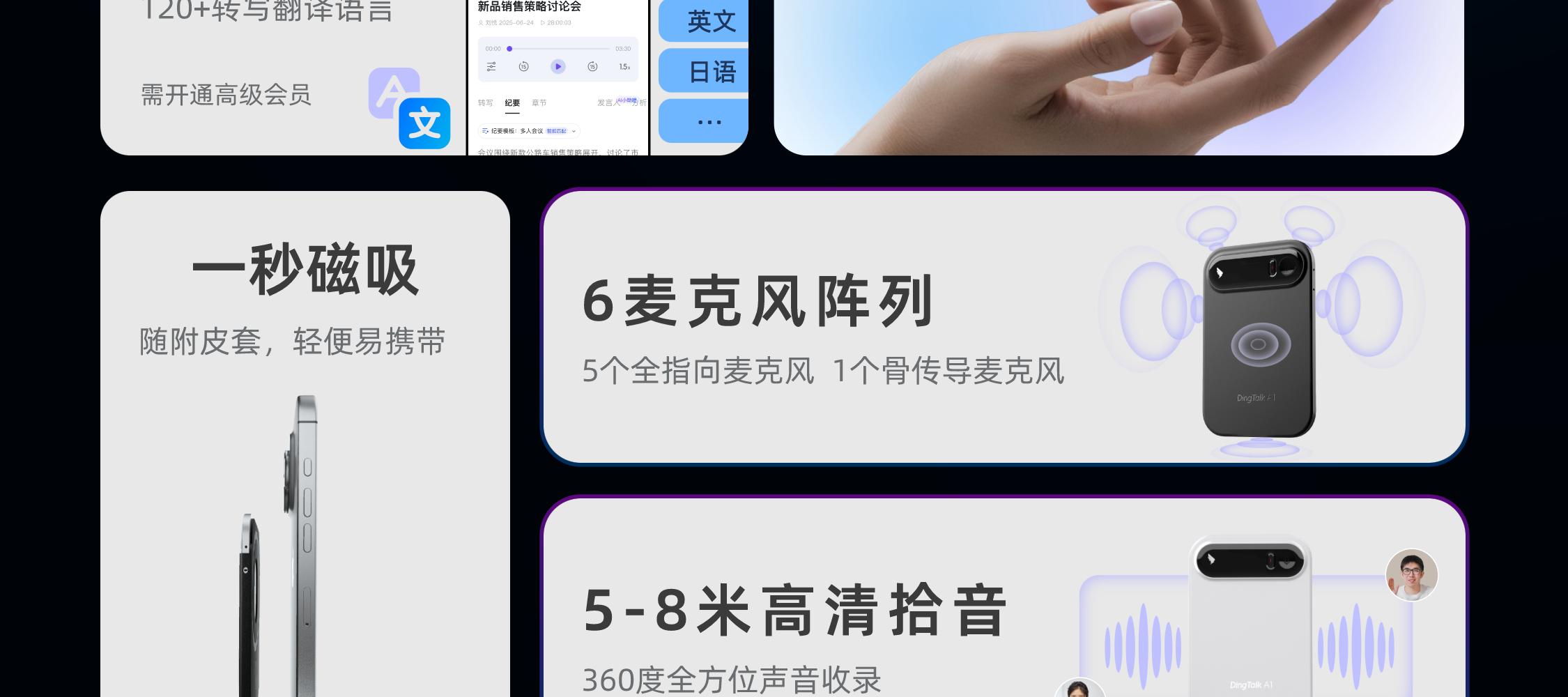 钉钉A1 DingTalk AI智能录音笔会议纪要 AI分析总结实时转写翻译